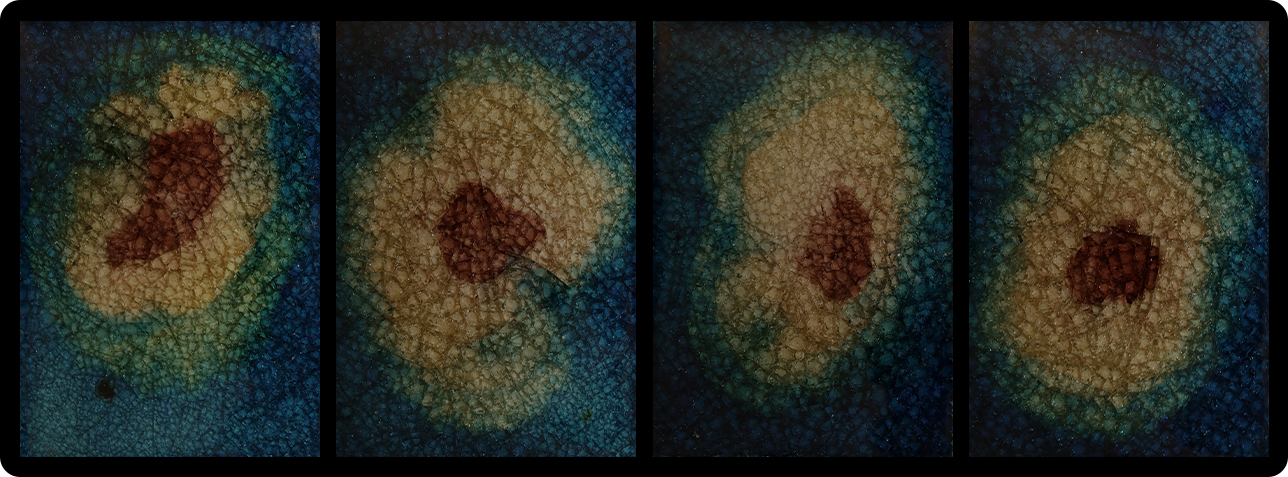 Each handmade tile showcases distinctive patterns where warm terracotta formations drift uniquely through golden and emerald depths, ensuring no two urns are alike. Borosilicate glass preserves these rich, jewel-like tones without fading, ensuring this memorial remains luminous for generations.